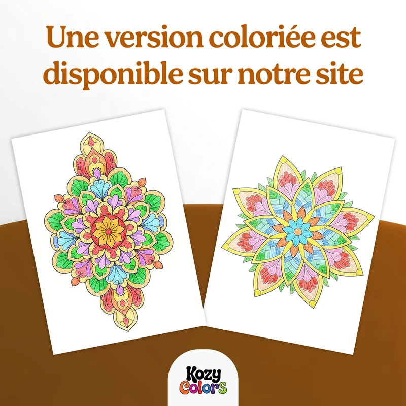 نسخة ملونة لكل تصميم، لتستوحي منها الألوان وتنمّي ذوقك الإبداعي أثناء التلوين