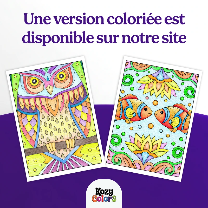 نسخة ملونة لكل تصميم، لتستوحي منها الألوان وتنمّي ذوقك الإبداعي أثناء التلوين